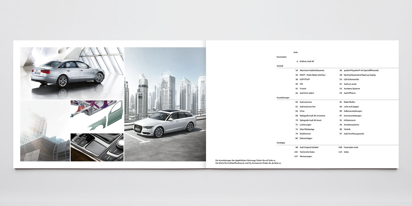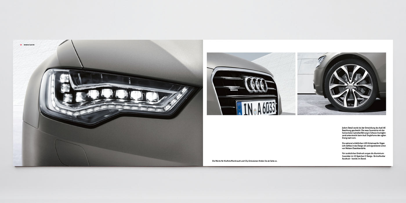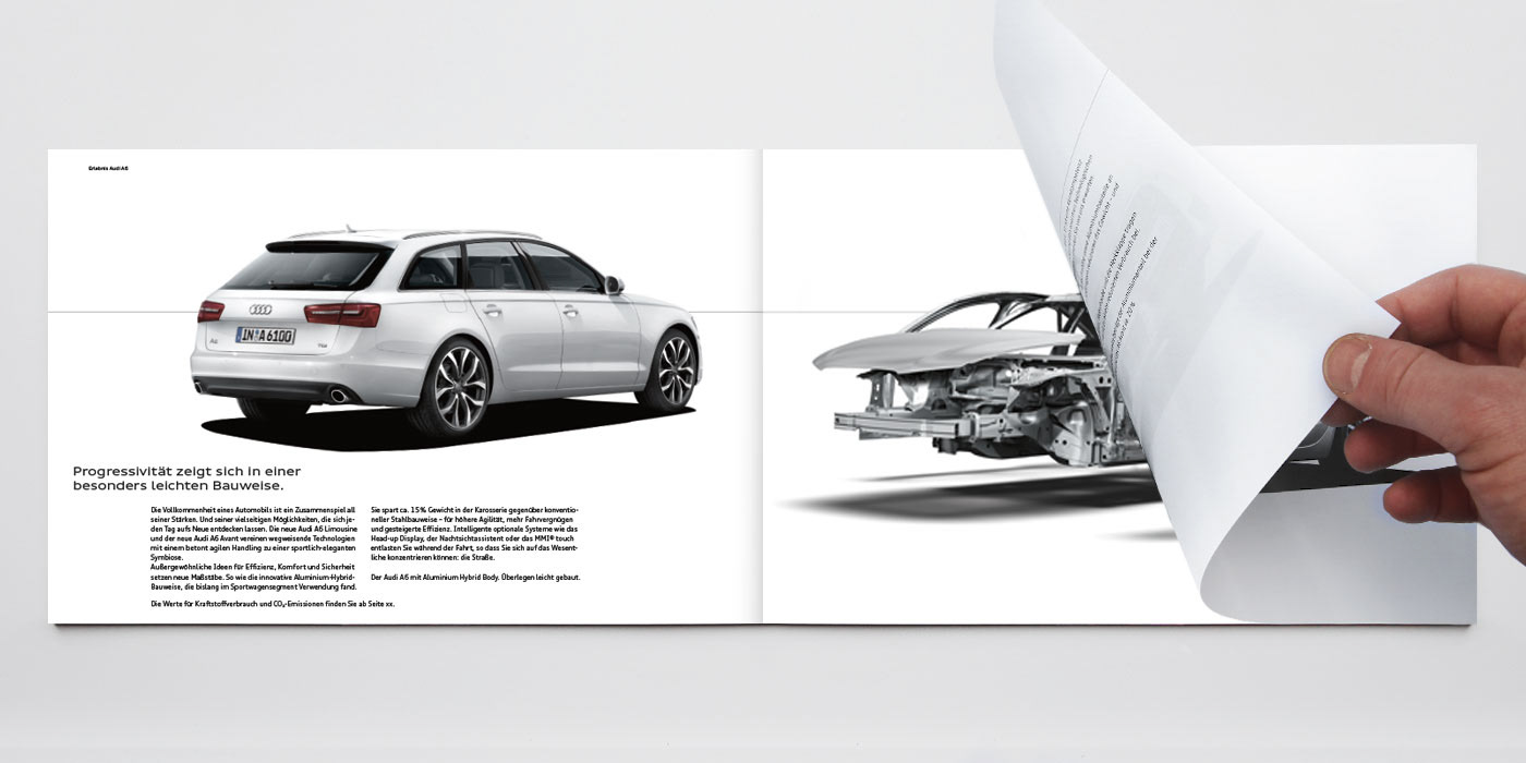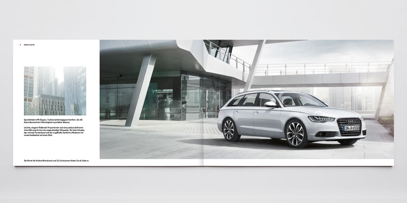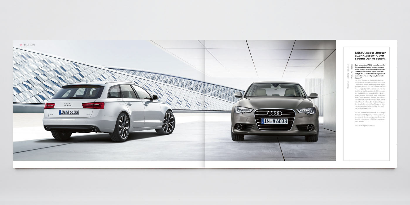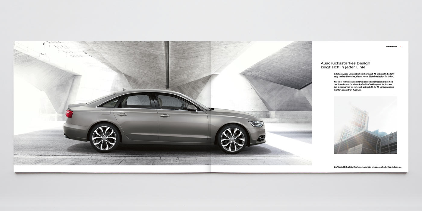Audi A6 Katalog – Konzept, Art Direction, Layout, Shootingbetreuung Agentur: Philipp und Keuntje